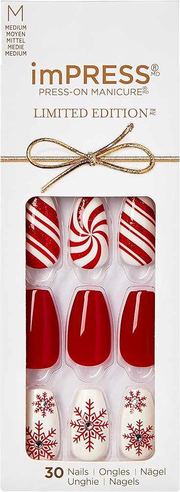 KISS imPRESS Limited Edition Holiday Press-On Manicure with PureFit Technology, Medium Length, Co...