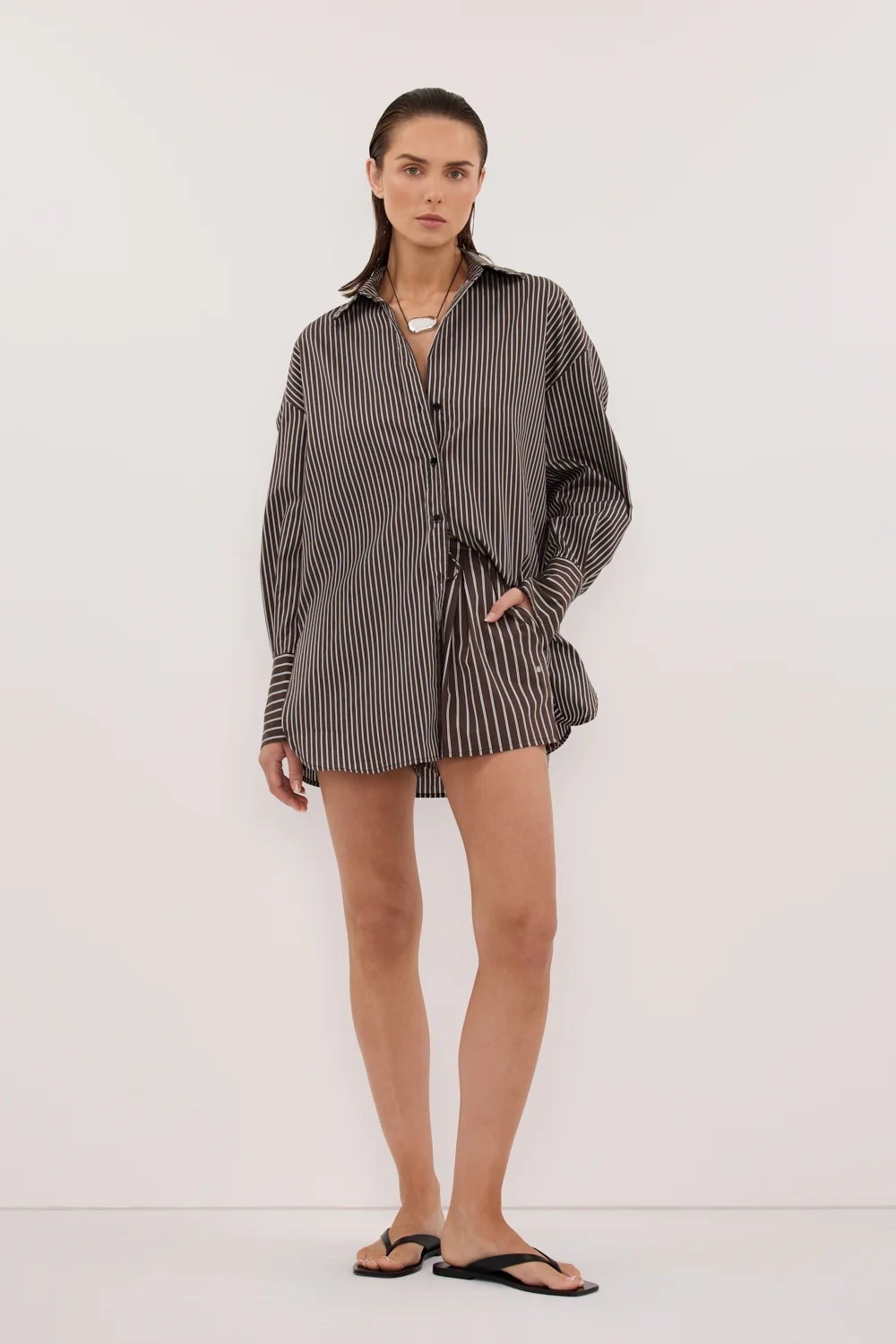 3️⃣ Favorite Daughter oversized khaki shirt with white pinstripes — relaxed, borrowed-from-the-boys, perfect for spring 👔