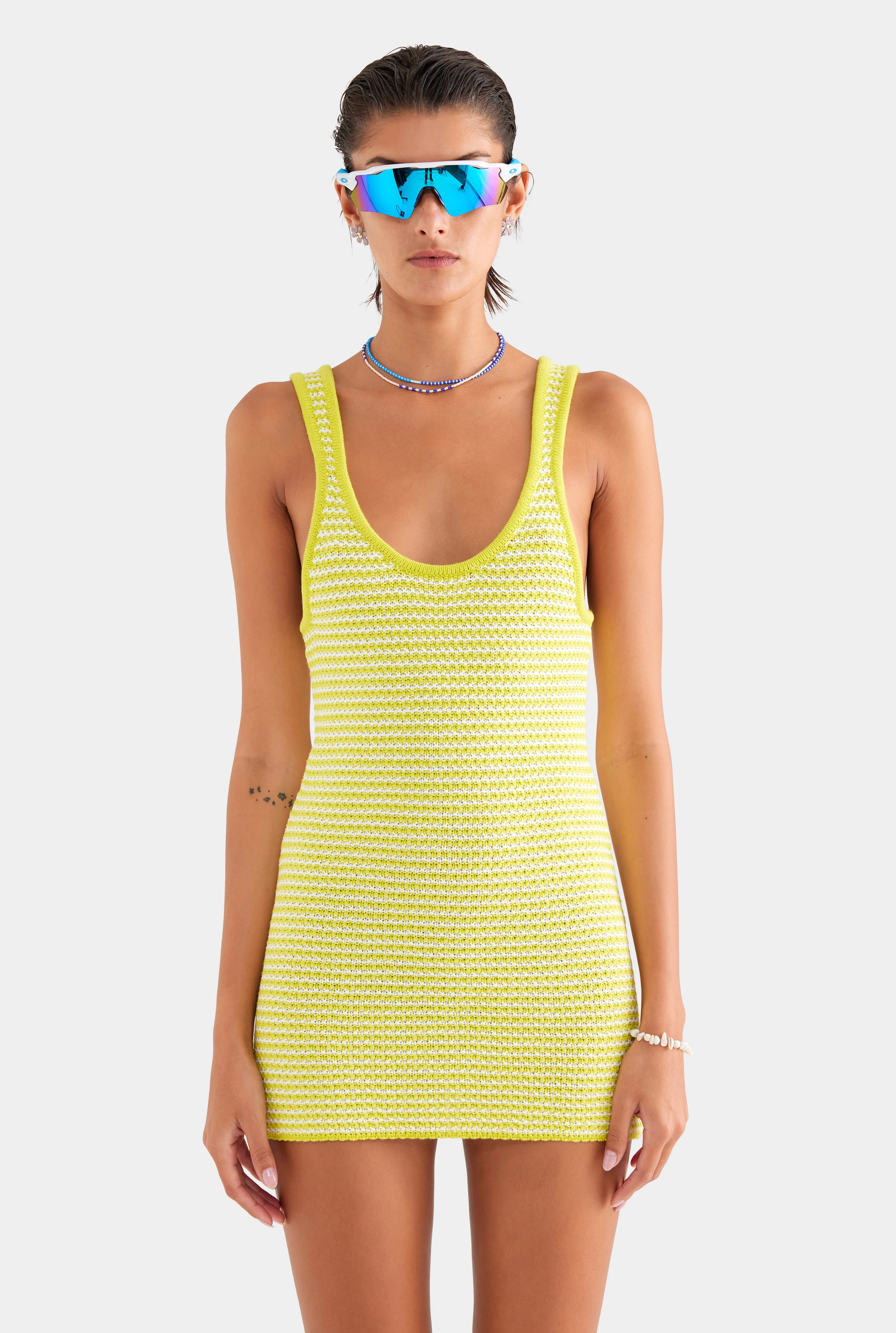 Womens Striped Cotton Knit Mini Dress in Print | Venroy