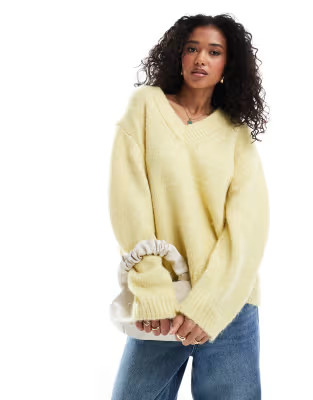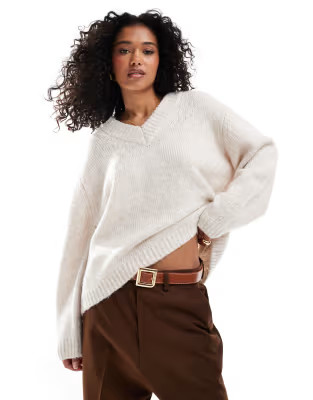 oversized chunky knit sweater with a midi skirt and ankle boots. Layer with a longline coat.