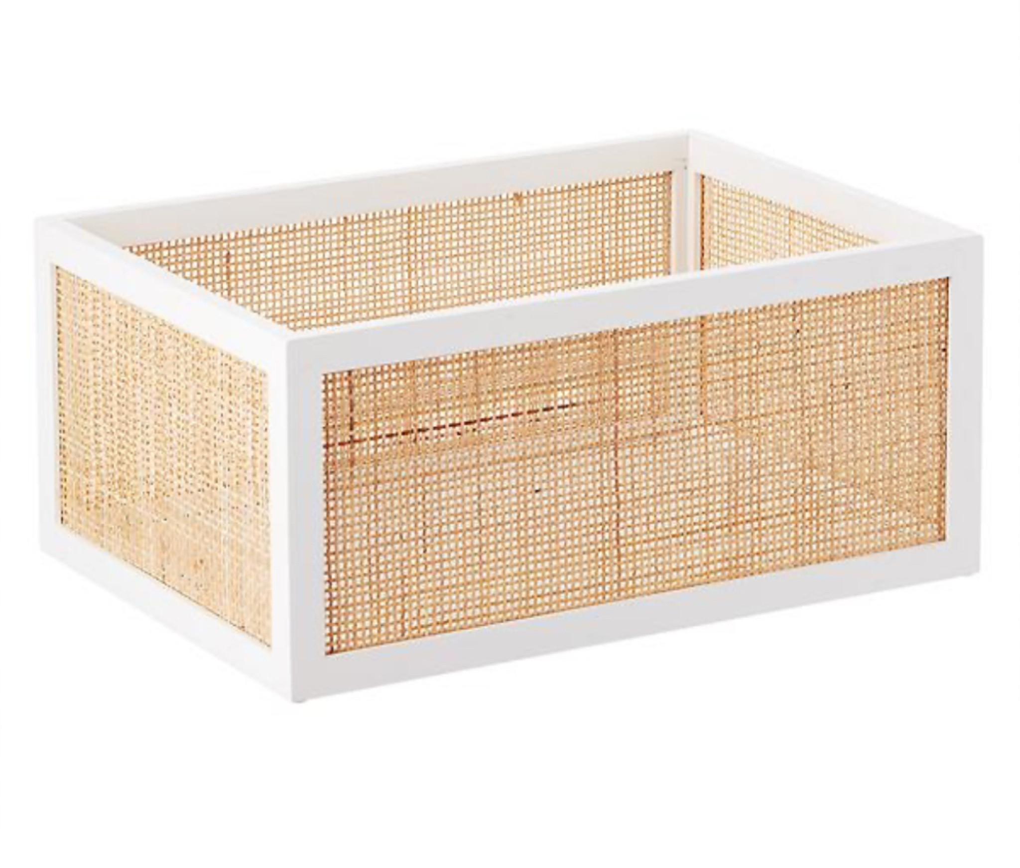 Shop this organized pantry. The white and natural bins/baskets create a warm look.