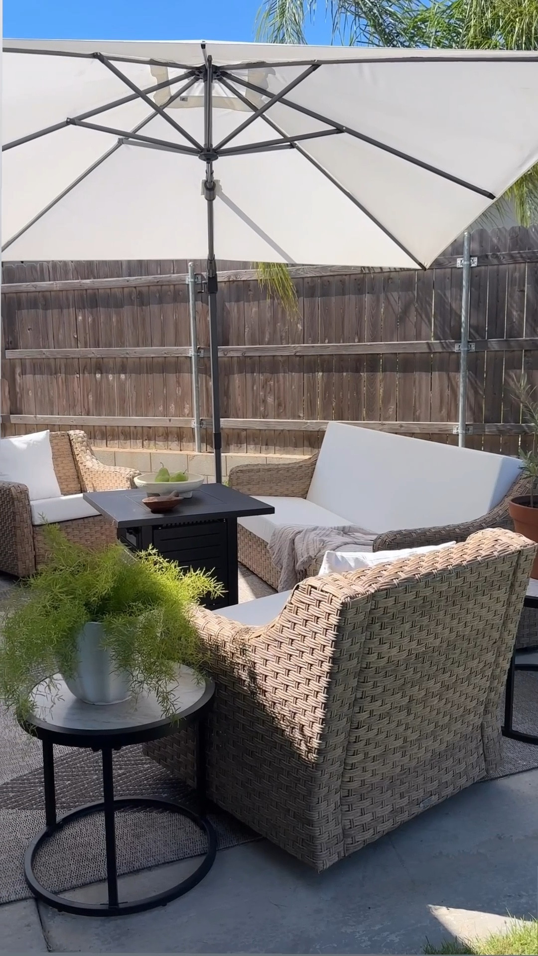 But this 10x10 umbrella from @purpleleafgarden I 100% recommend. I have had no issues since I’ve styled it in my backyard. It’s really easy to use and move around.
