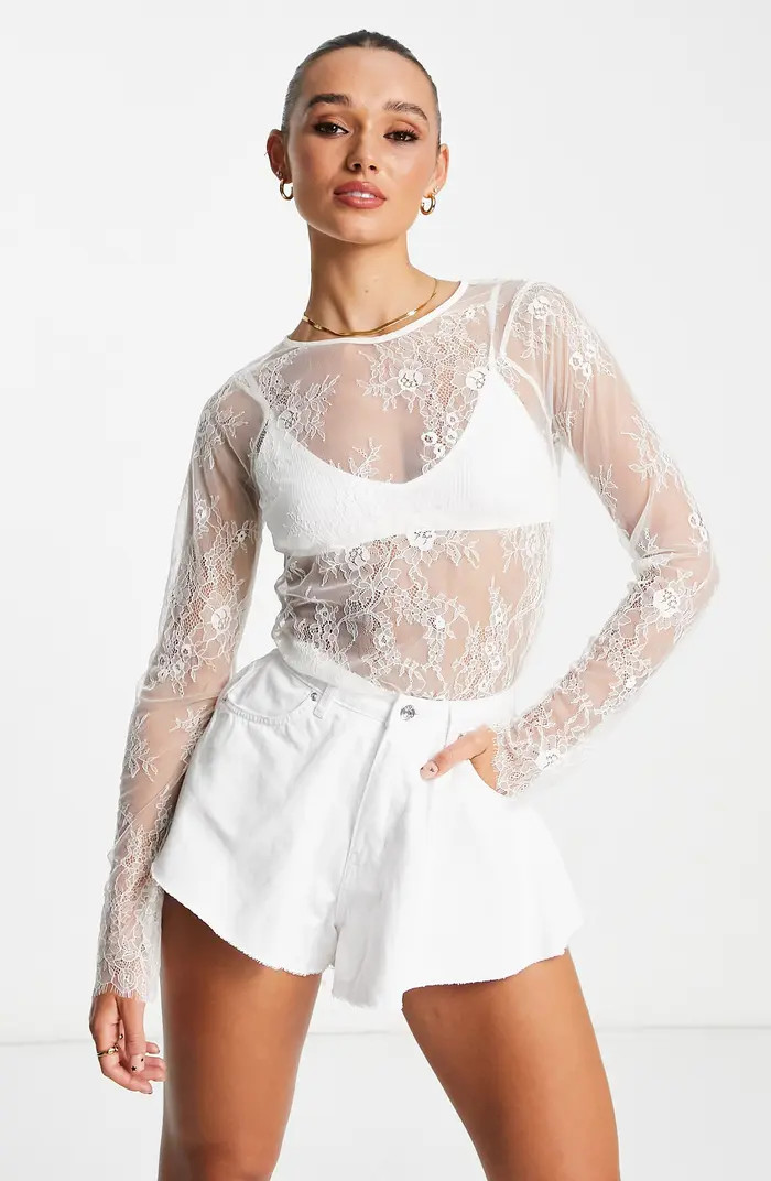 Topshop Lace Sheer Long Sleeve Top | Nordstrom