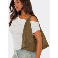 Bran Shaped Shoulder Bag In Khaki Faux Suede, Women's Size UK One Size