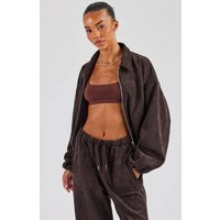 Cernucci Women's Suede Collared Bomber Jacket - Chocolate in Brown | Size: Large