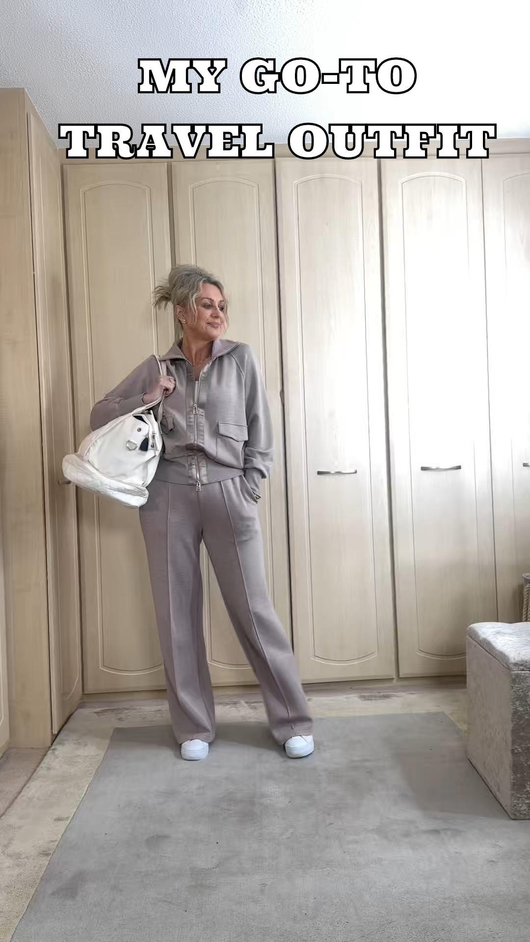 Soft grey lounge set, under £40 each. Wide leg trousers, super soft fabric and easy to style for working from home, errands or travel days.