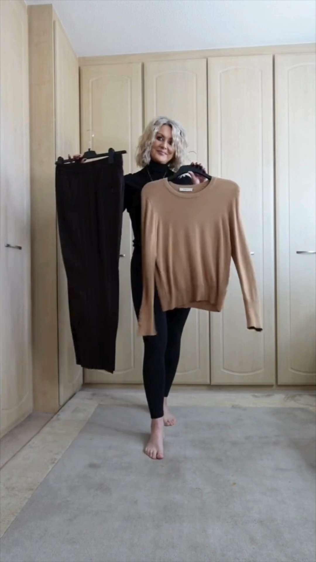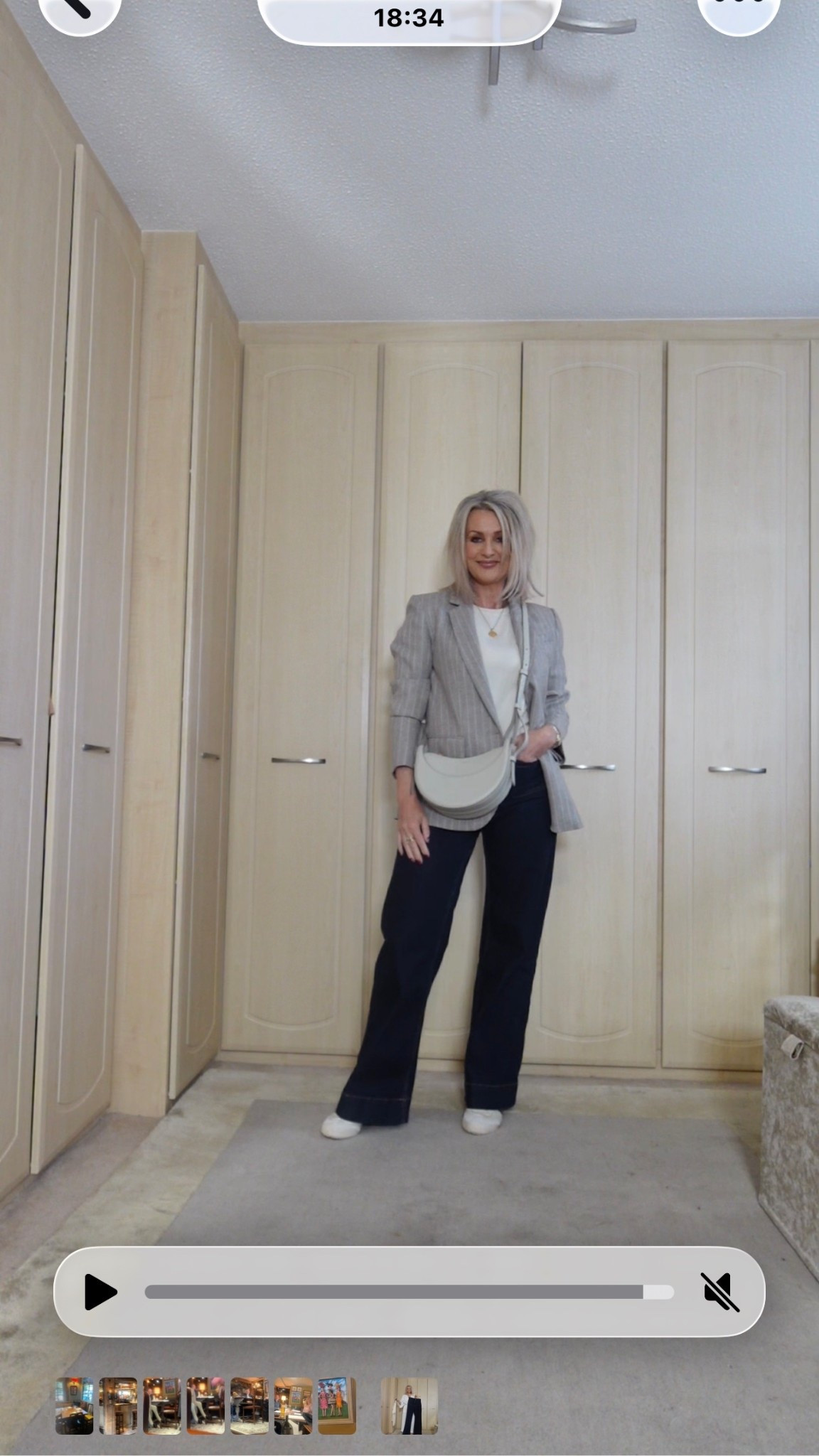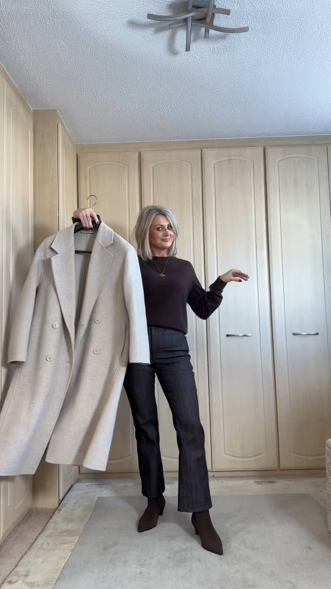 Wide-leg denim, soft cashmere, and a tailored blazer — my favourite smart-casual formula. Comfortable, polished, and perfect for everyday running around.