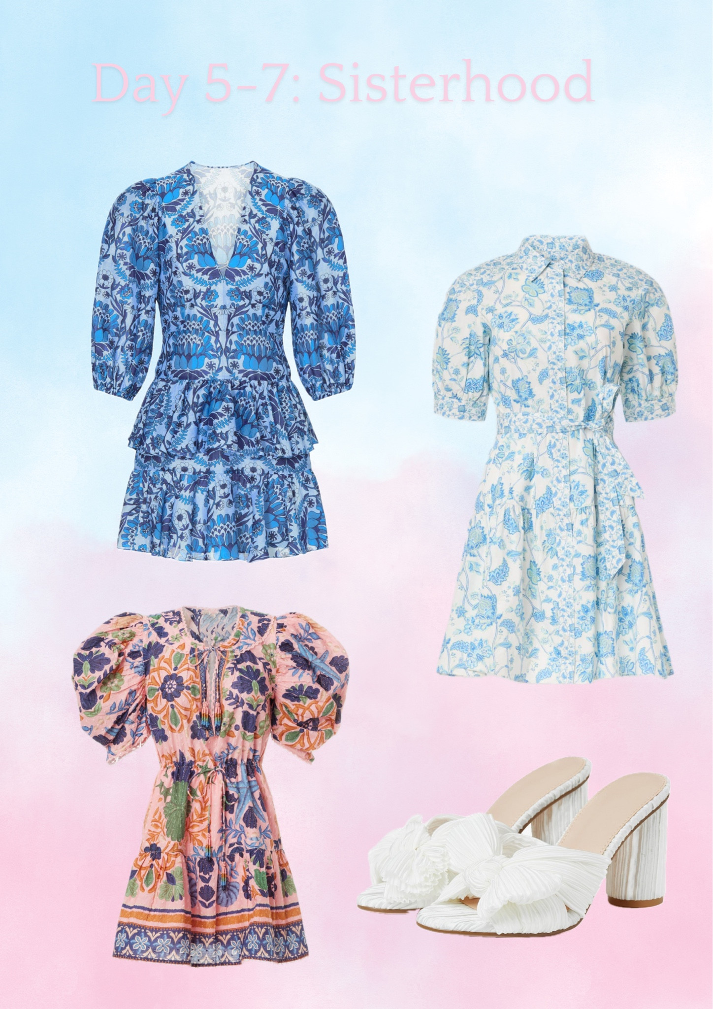 Grad Party Preppy VSCO summer vibes fun vacation Florida seaside blonde pastels white dress wedges van cleef rush dress