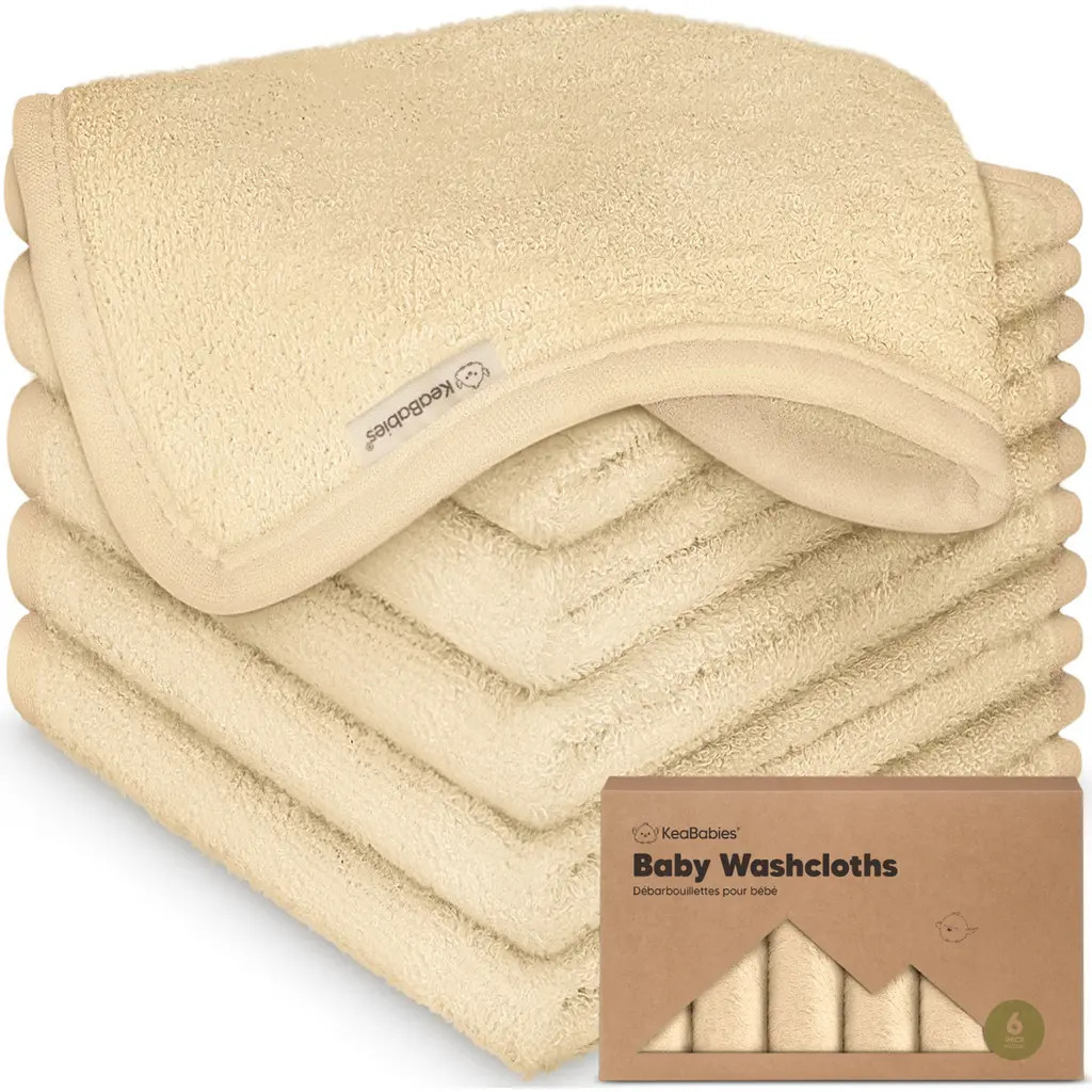 KeaBabies 6-Pack Cami Baby Washcloths for Newborn, 10x10 Organic Cotton Face Wash Cloths for Babies, Soft & Absorbent Baby Bath Towels (Lunaris)