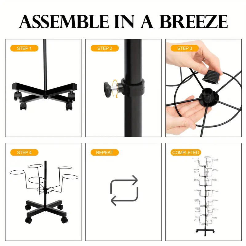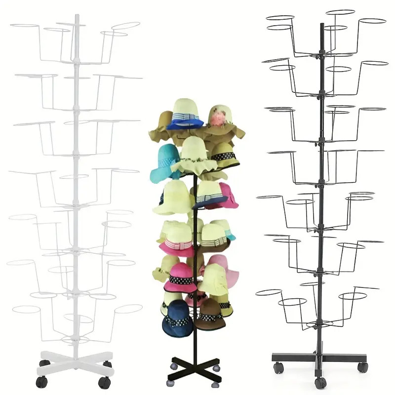 Black 7-tire rotatable Hat Rack 35 Hat Rests Bottom of The Rack Is Equipped with Four Pulleys Sui...