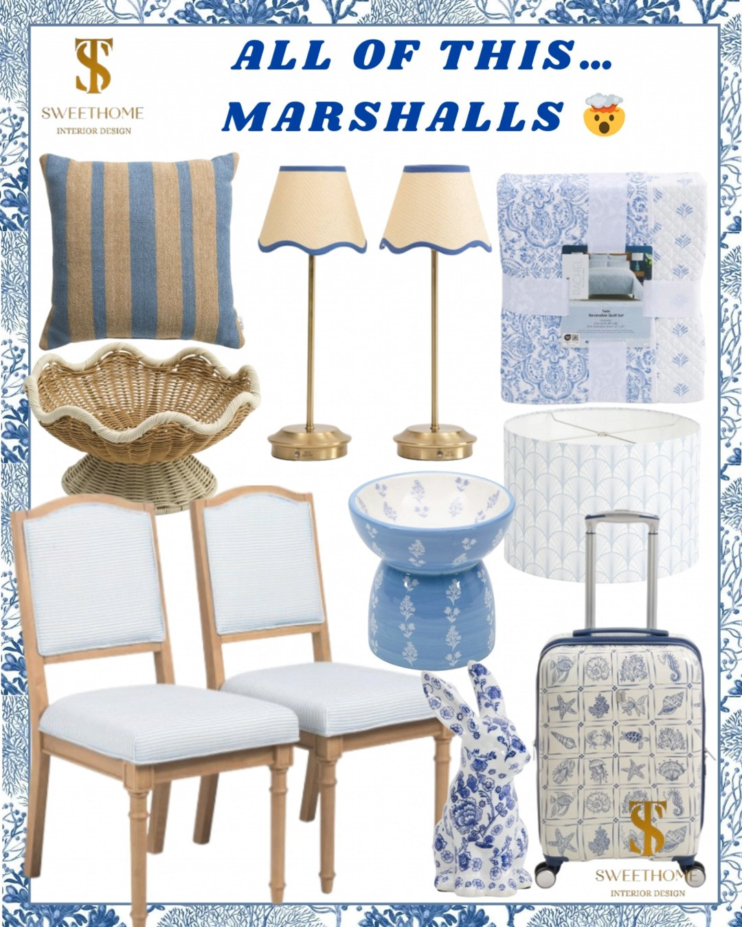 classic grandmillennial, grandmillennial finds, blue and white, timeless home decor, wayfair finds, tj maxx finds, birch lane finds, anthropologie, amazon finds #stsweethome