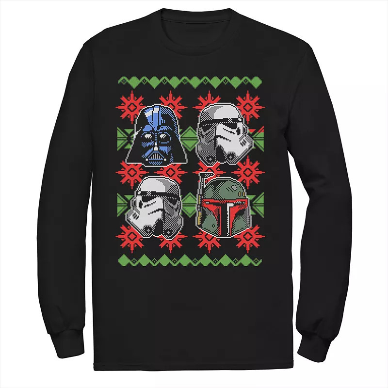 Men's Star Wars Bad Guy Helmets Ugly Christmas Long Sleeve Tee, Size: Small, Black