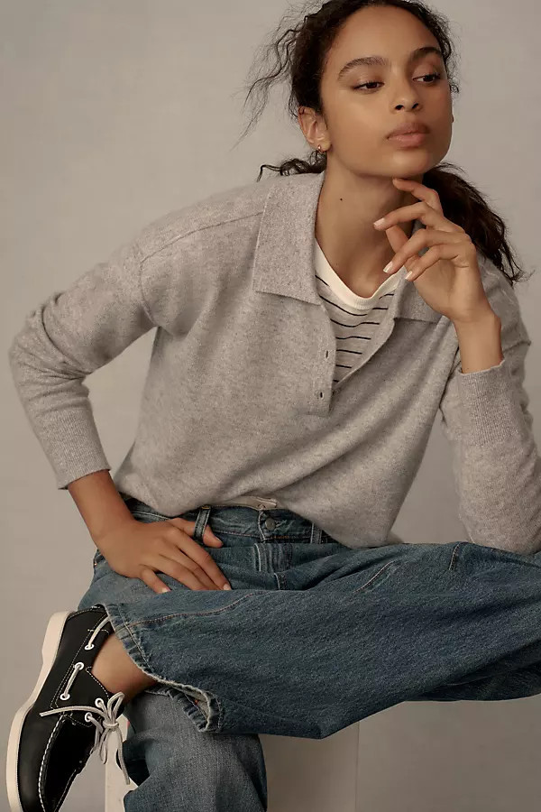 The Jensen Cashmere Crop Polo Sweater by Pilcro