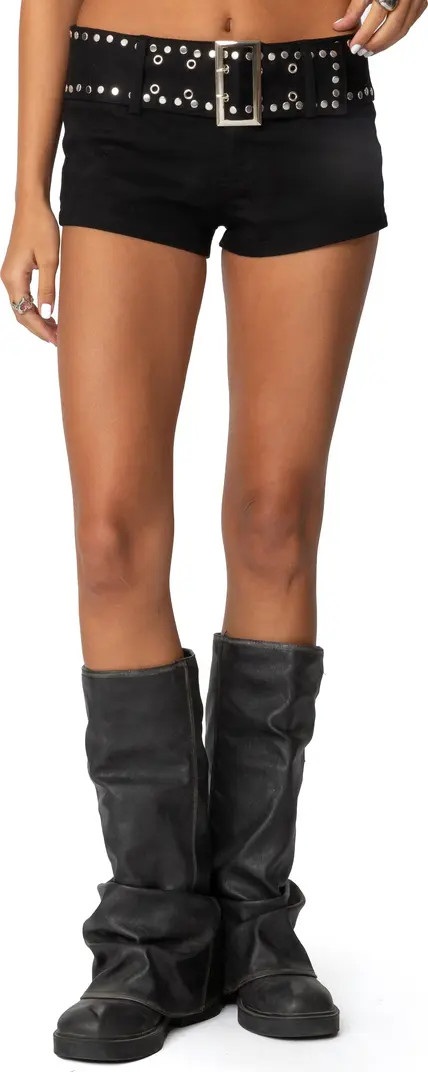 Belted Stretch Cotton Micro Shorts