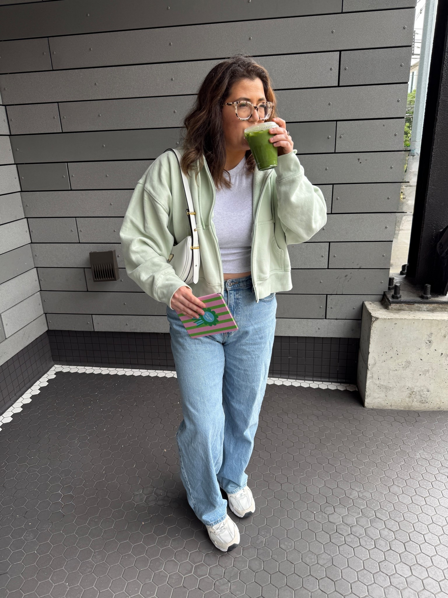 Coffee run outfit! Sweater on sale currently, use code Suiteaf for extra 15% off! Abercrombie sweater, jeans, Amazon style, adidas spezial, ysl #LTKSaleAlert #LTKStyleTip #LTKSeasonal
