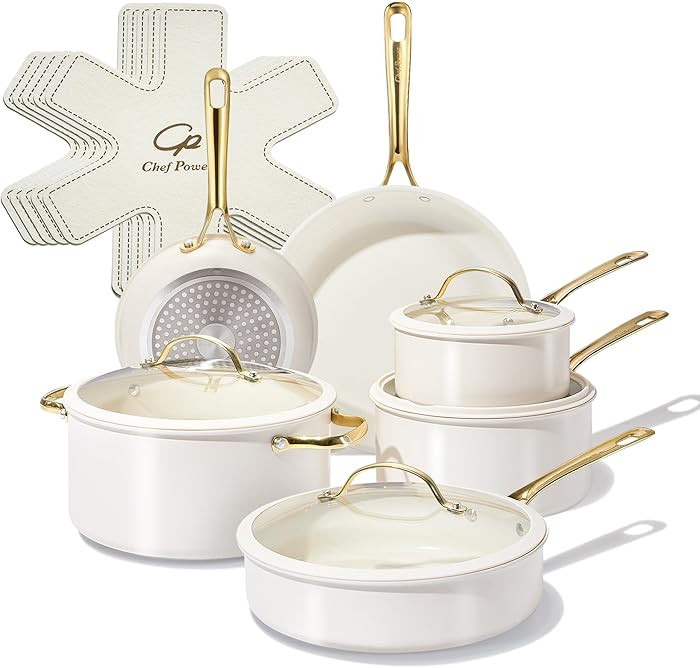 Chef Power Juego de utensilios de cocina de cerámica, 15 ollas y sartenes antiadherentes, juego ...