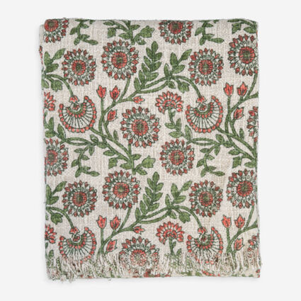 Green Paisley Slub Printed Throw 127x152cm
