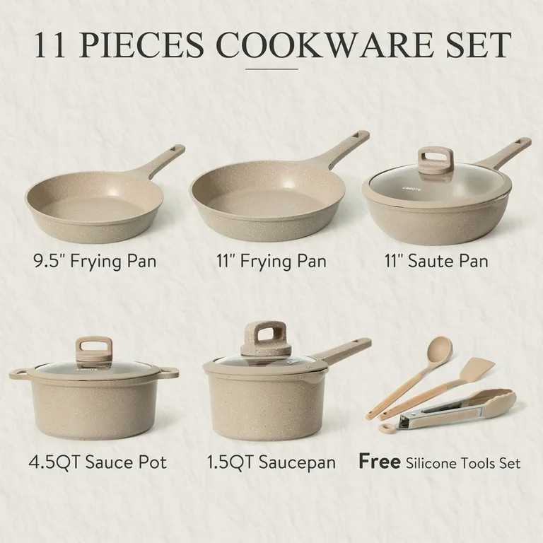 Carote Nonstick Pots and Pans Set, 11 Pcs Non Stick Cookware Set, Induction Stone Cookware Kitche...