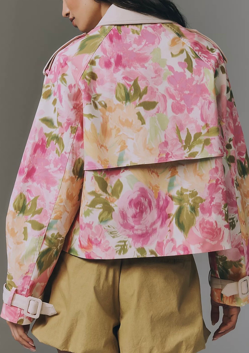 Maeve Retro Floral Cropped Trench Coat | Anthropologie (US)
