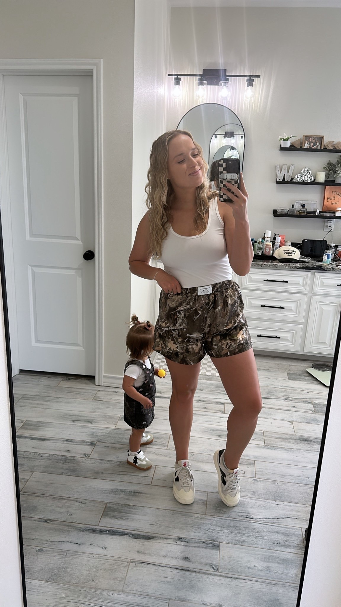 Super cute and comfy mom outfit. Veja Minotaur outfit, romper outfit, summer outfit, high top outfit