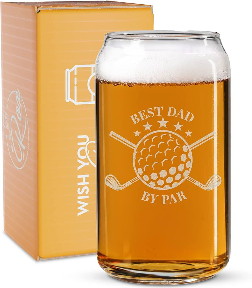 Golf Gifts For Men - “Best Dad By Par” 16 Oz Beer Glass - Golf Beer Can Glasses - Men’s Gol...