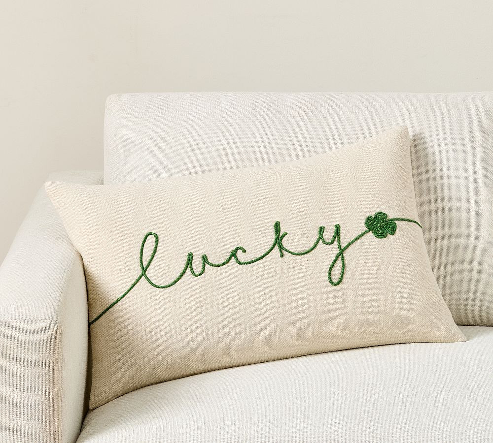 Lucky You Embroidered Lumbar Pillow