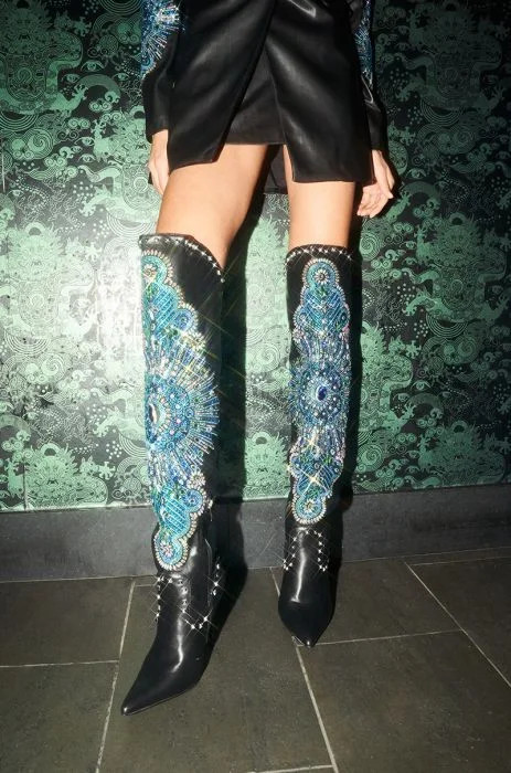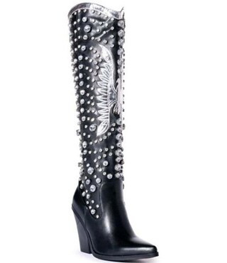 Western boots with tall shaft.
