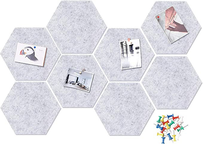 HyFanStr Felt Pin Board Wall Bulletin Board, Hexagon DIY Memo Board Notice Board with 20 Push Pin...