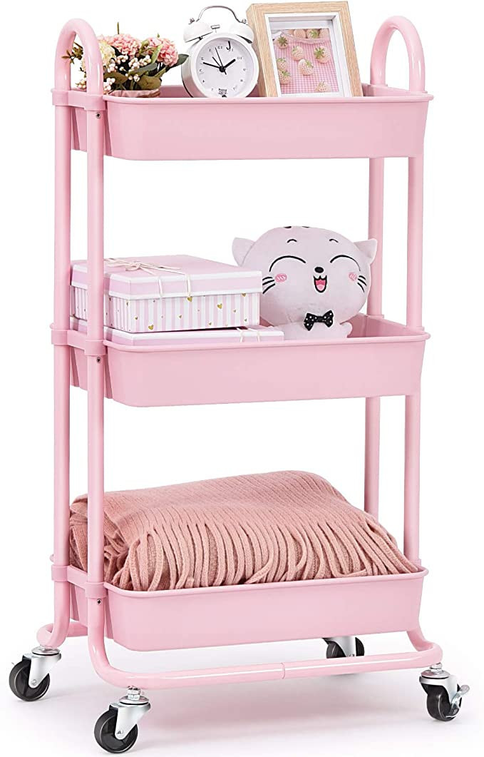KINGRACK Storage Trolley Cart, 3 Tier Rolling Cart, Multi-Purpose Storage Organiser, Organizer Tr...