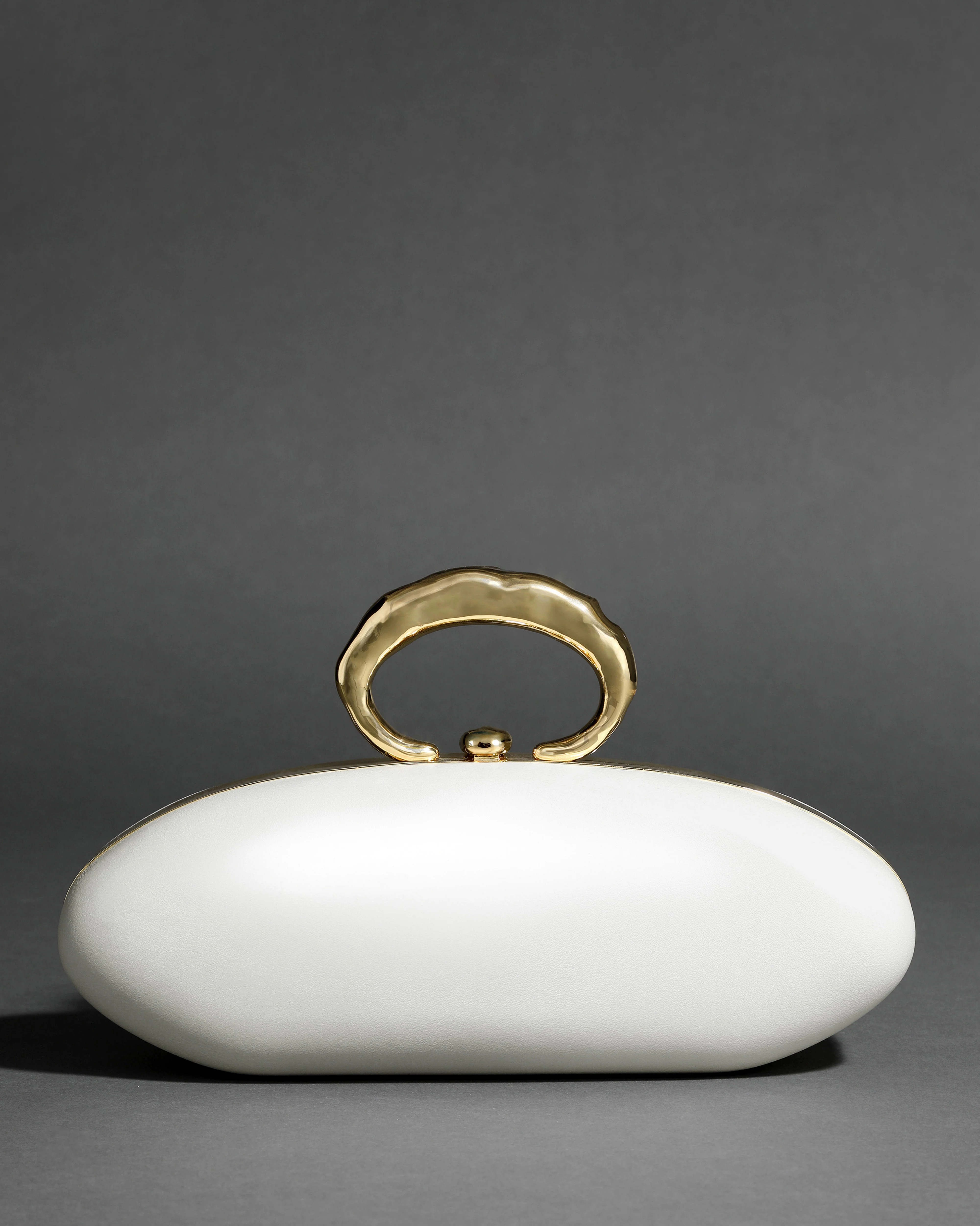 White Pearl Molten Gold Bullet Minaudière | White Pearl Leather Clutch Purse