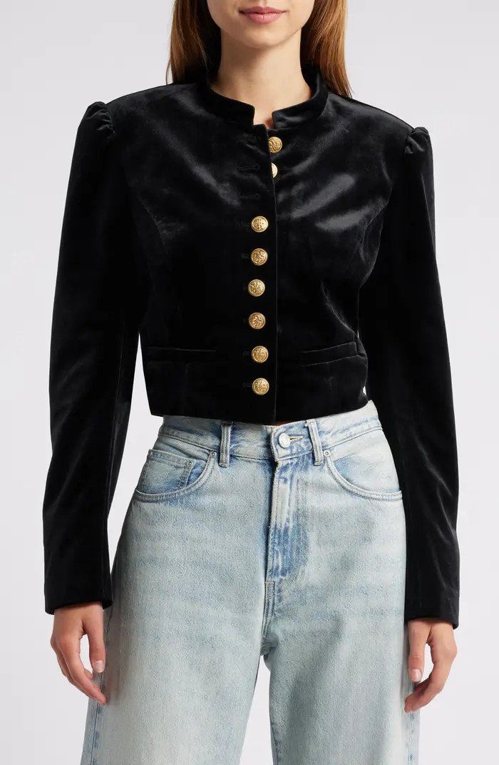 LoveShackFancy Pendine Crop Velour Jacket | Nordstrom