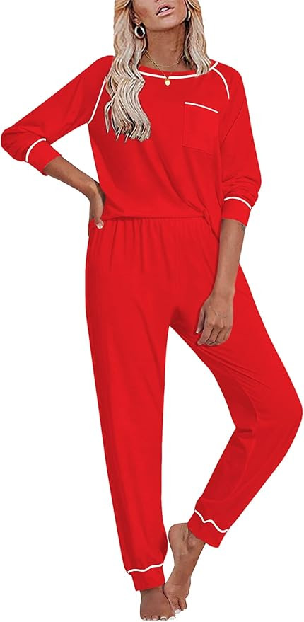 Ekouaer Pajamas for Women Soft Cotton Loungewear Two Piece Lounge Sets Long Sleeve Sleepwear S-XX...