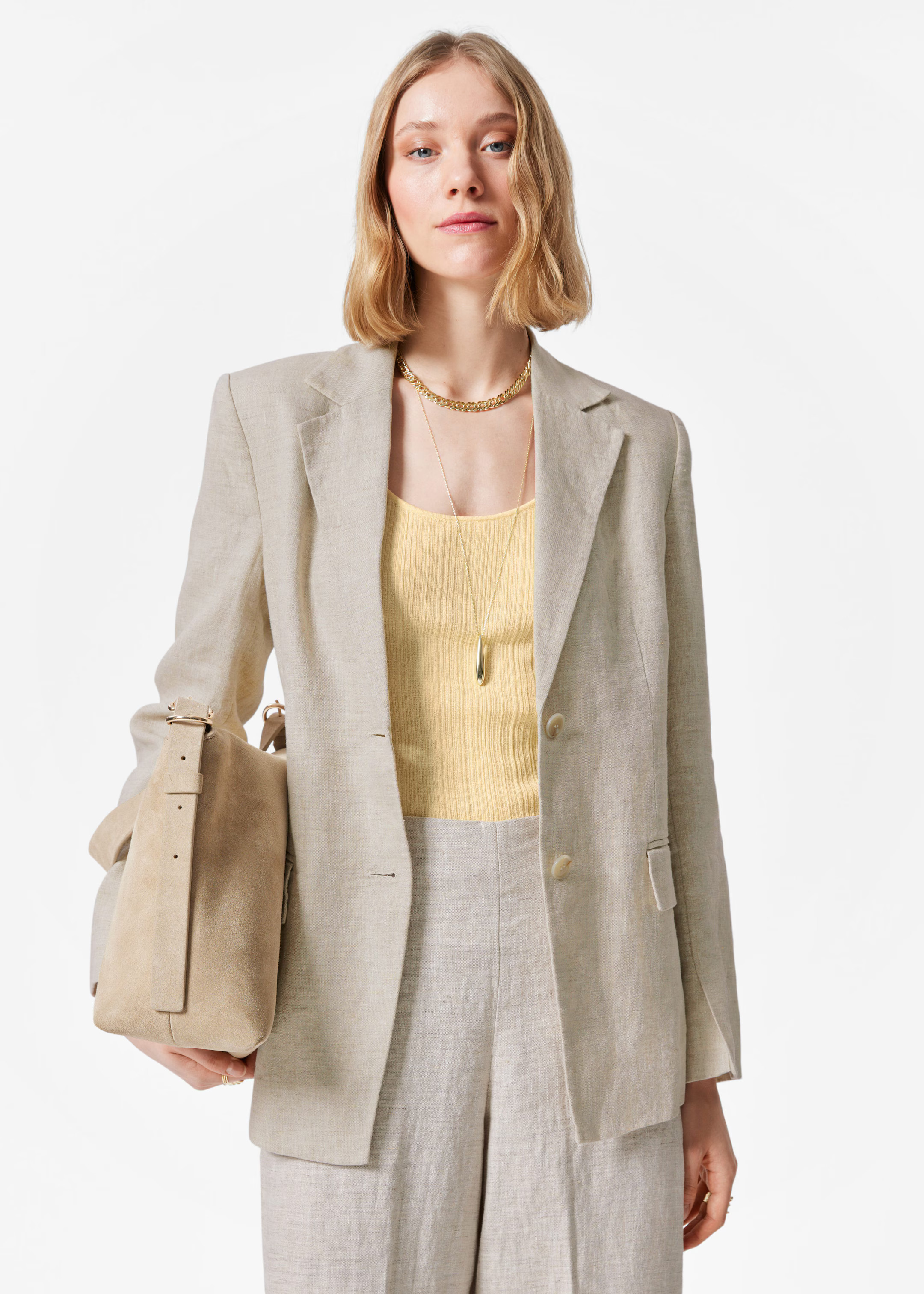 Heels + Jeans + Shirt + Linen Blazer
