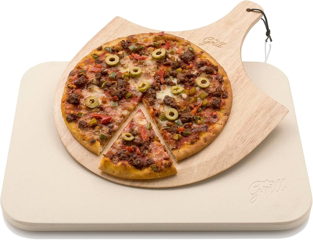 HANS GRILL PIZZA STONE | Rectangular Pizza Stone For Oven Baking & BBQ Grilling With Free Wooden ...