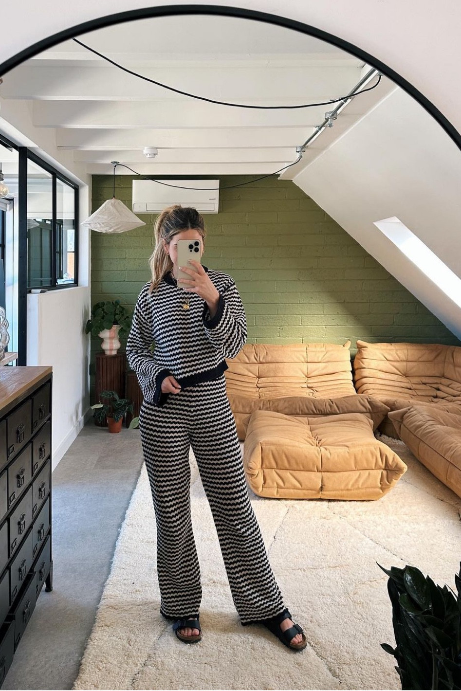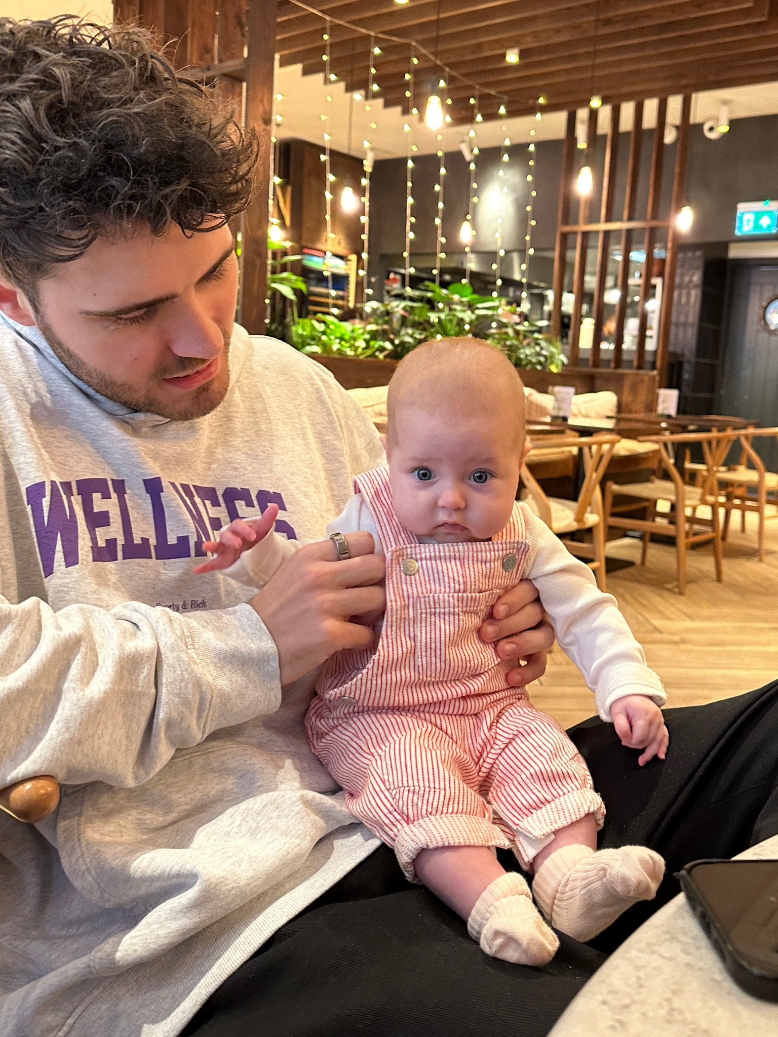 Long brown jacket, stripped trousers, grey hat, pink slippers, waterproof onesie jacket, pink hat, winter outfit, snow ootd, puddle suit #LTKkids #LTKfamily #LTKSeasonal