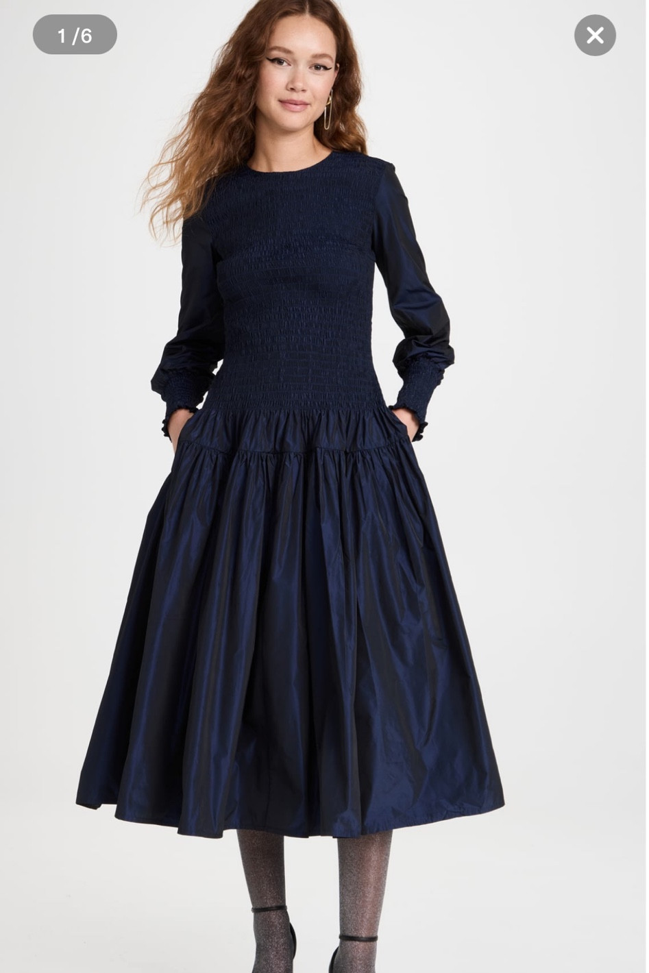 Molly Goddard Shirred Taffeta Long Sleeve Midi Dress | SHOPBOP | Shopbop