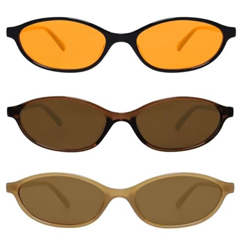GUVIVI Retro Oval Sunglasses for Women Chic Cat Eye 90s Sunnies Lightweight Narrow Shades Trendy UV protection Sun Glasses