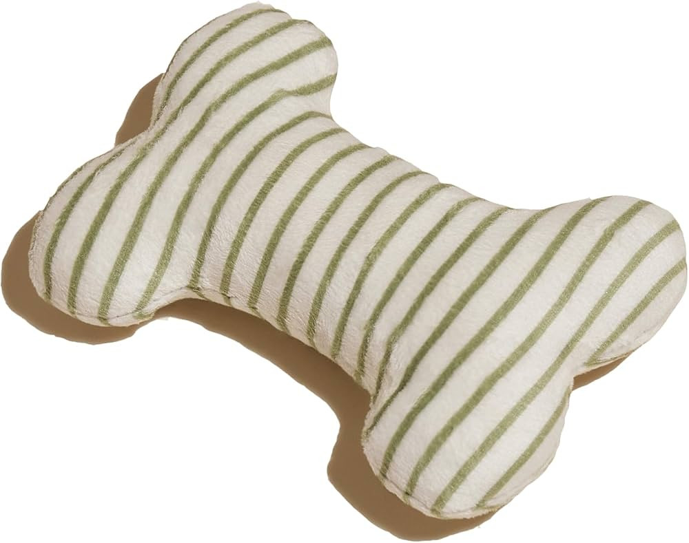 Green Striped Bone Shaped Plush Dog Toy 6" - Dog Toys for Medium & Large Dogs - Squeaky Dog Puppy...