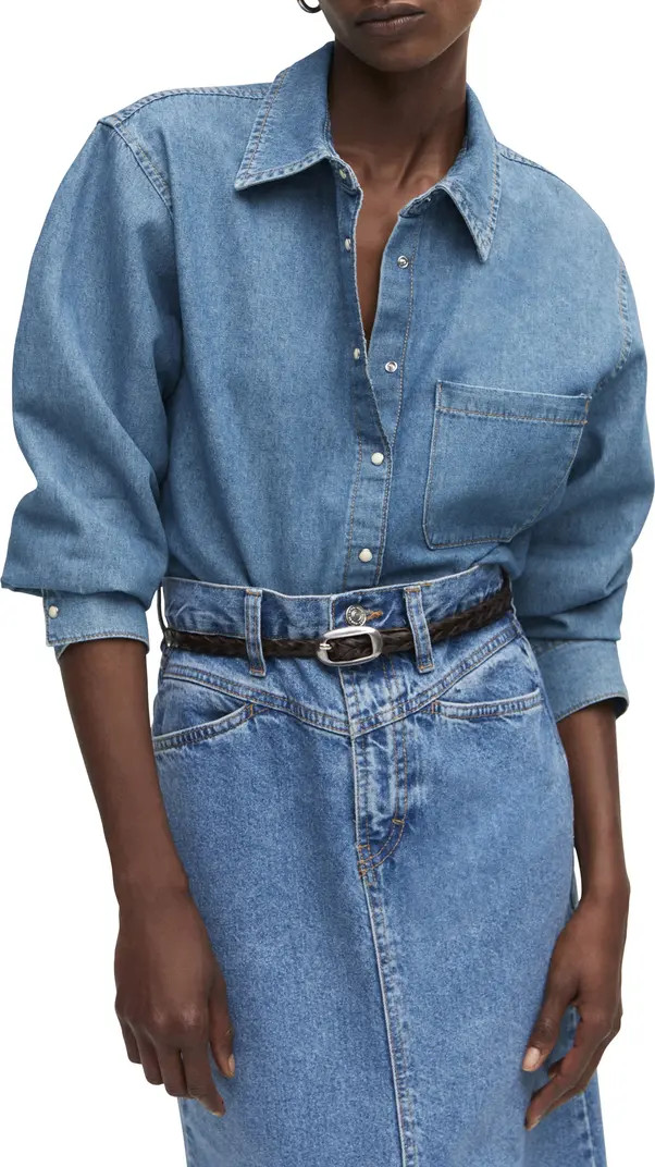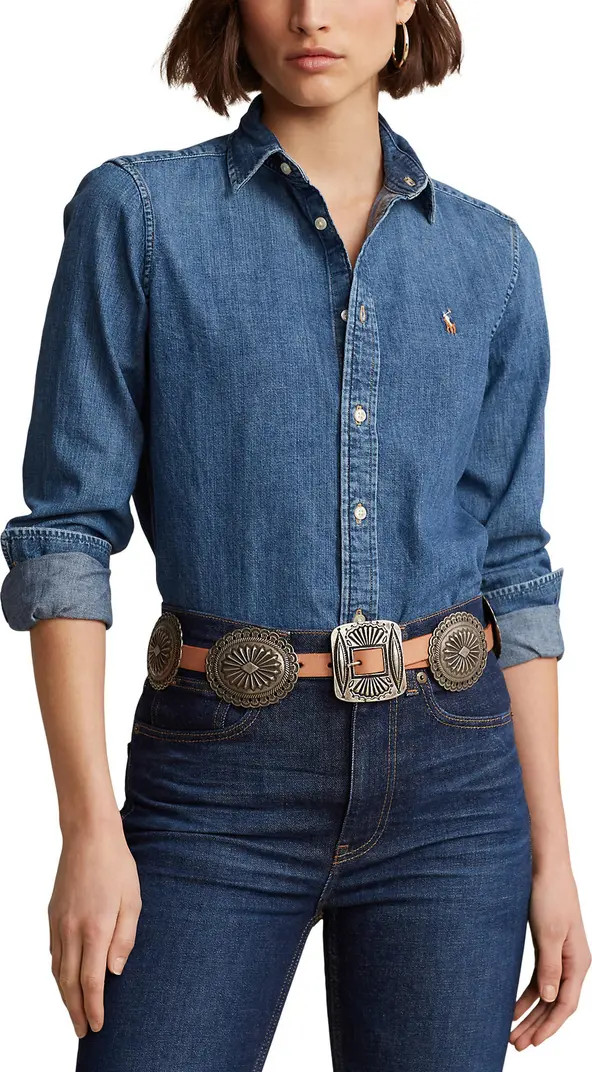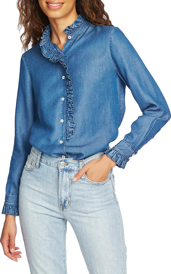 Denim shirts, classic, with ruffles…