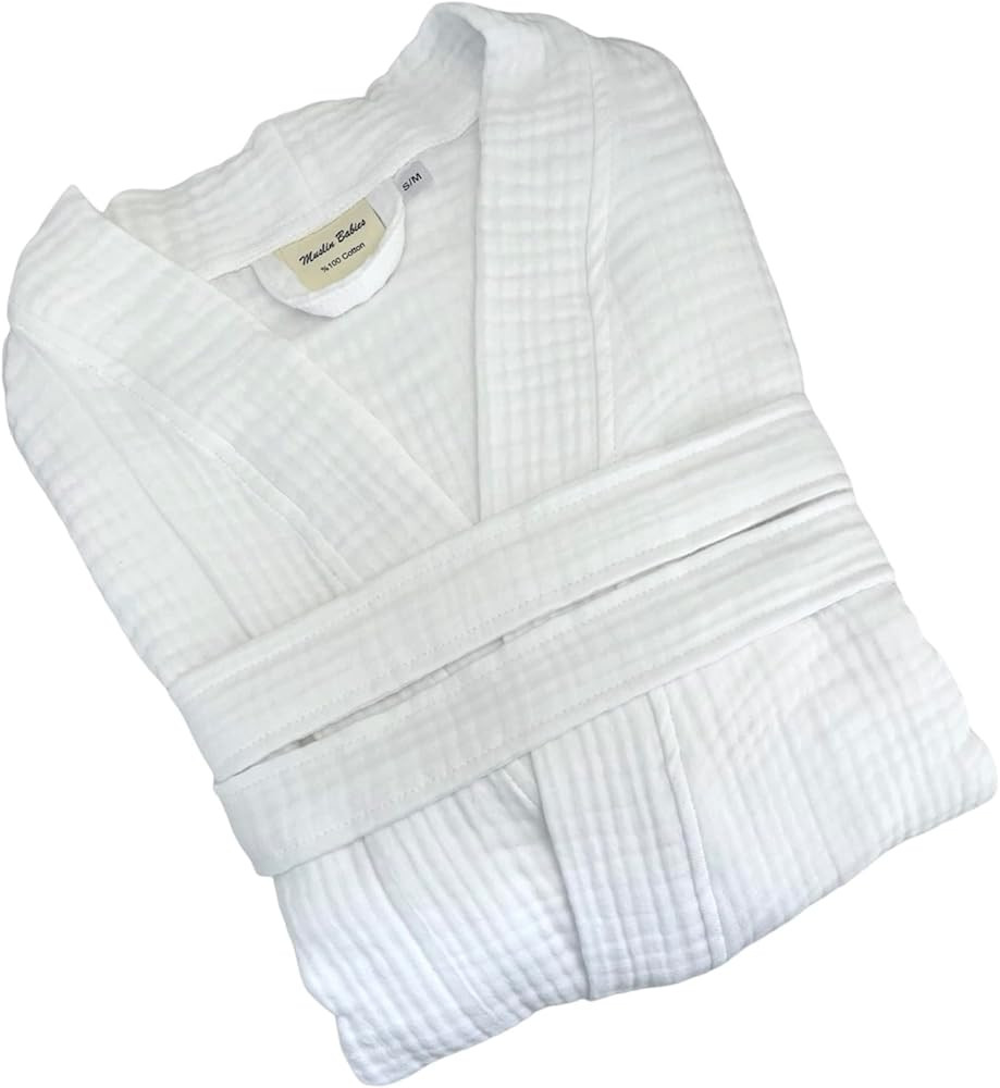 Muslin Bathrobe, Organic 100% Turkish Cotton, Natural and Absorbent Robe for Women and Men