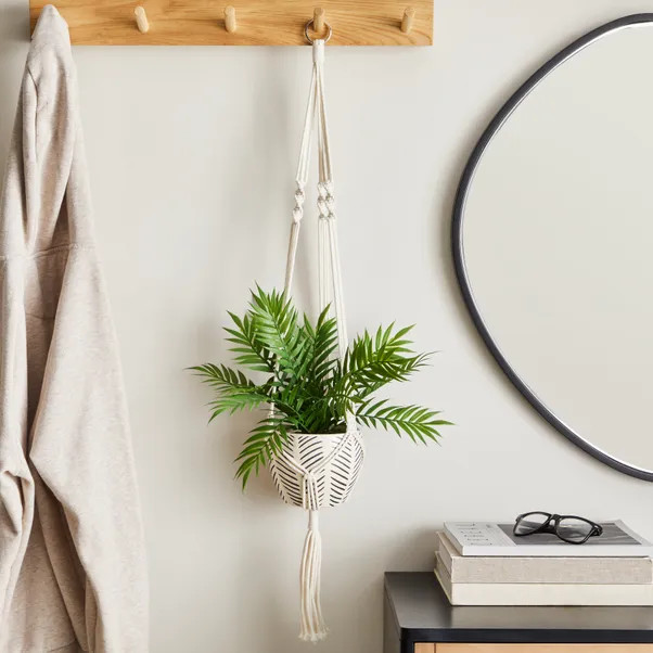 White Macrame Hanging Ceramic Plant Pot