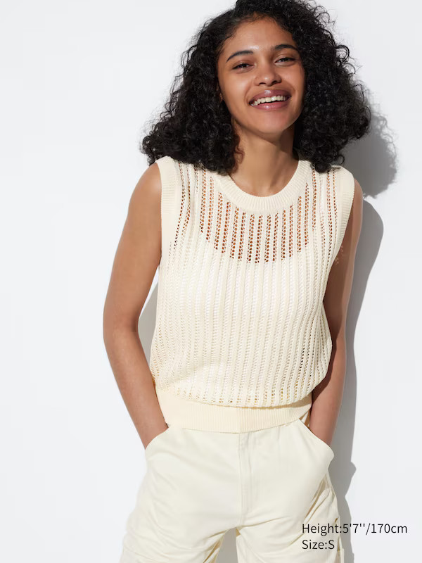 Mesh Crew Neck Sleeveless Short Sweater