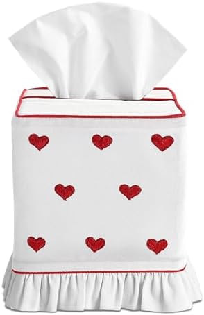 Ridhi Embroidered Heart Shape Premium 400 TC White Cotton Tissue Box Cover with Velcro Closure So...