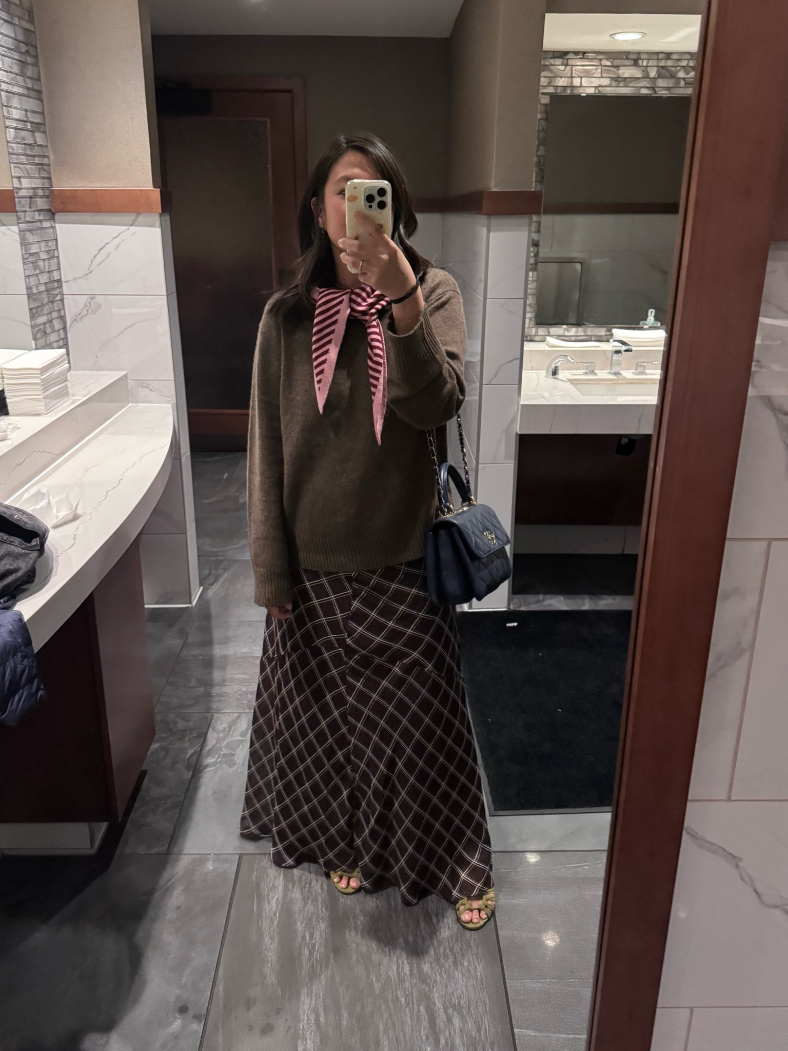 navy and blue with a scarf