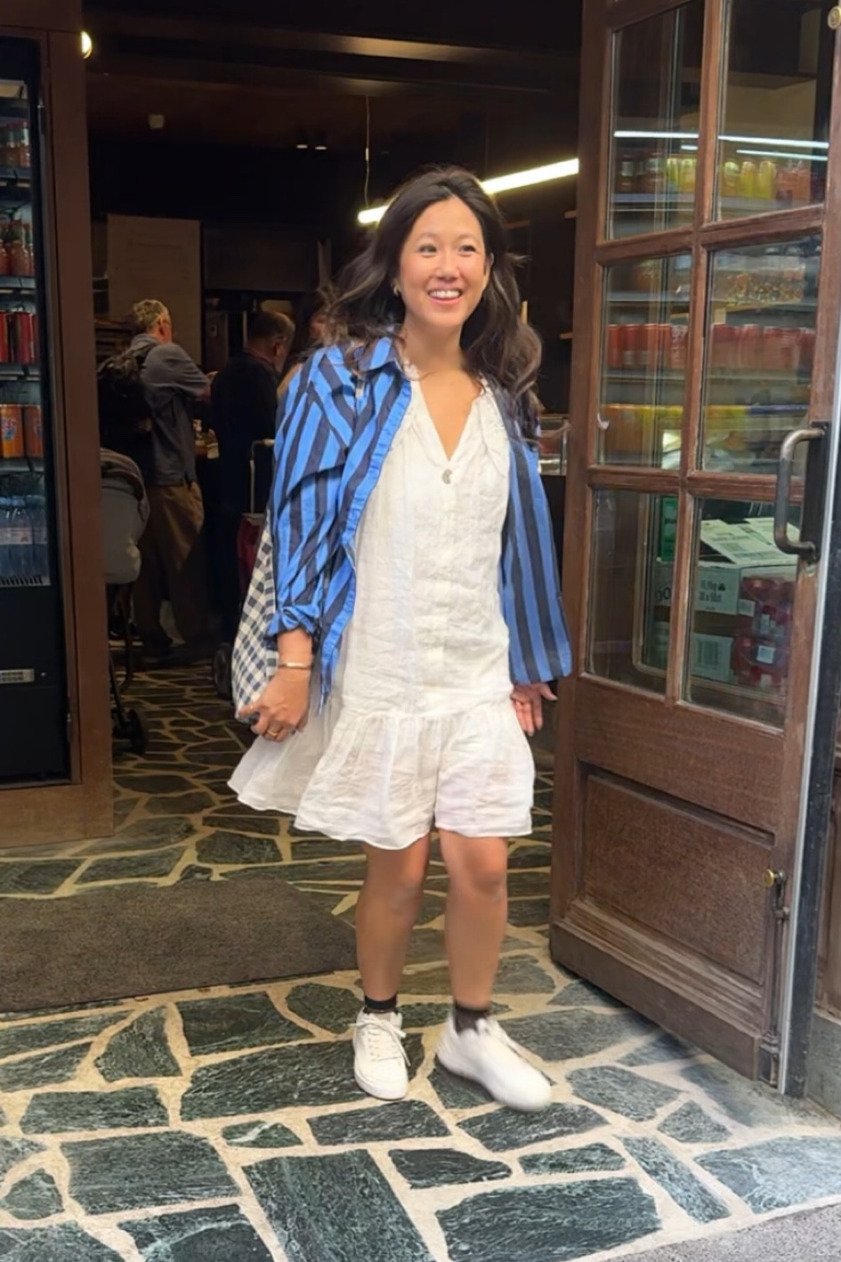 blue linen size M and white top is old from Abercrombie but linked similar