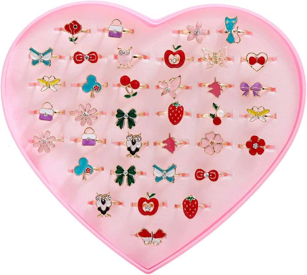 Fineder 36pcs Little Girl Adjustable Rings in Box, Children Kids Jewelry Rings Set with Heart Sha...