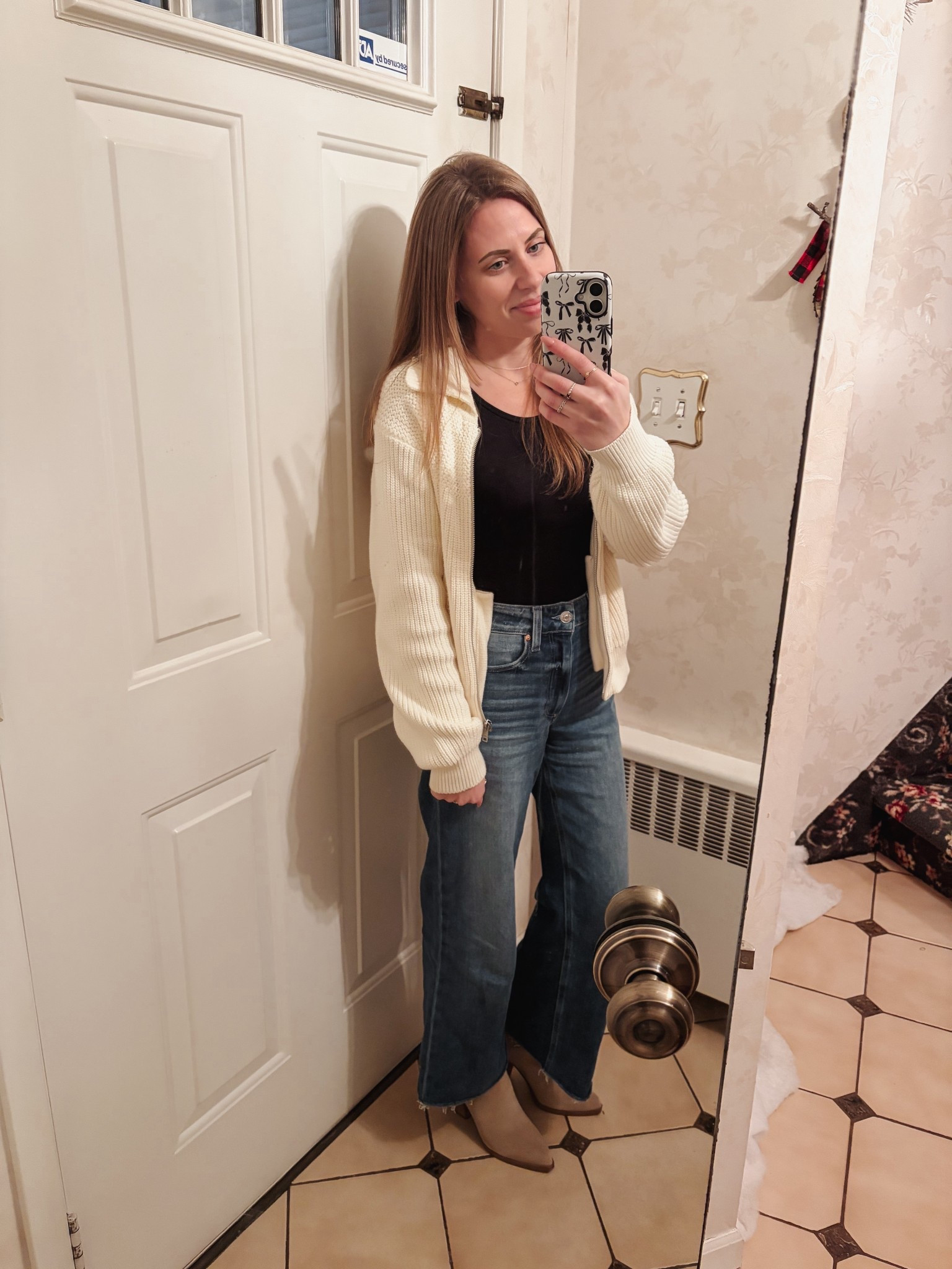 Wide leg jeans & leather jacket from Abercrombie.