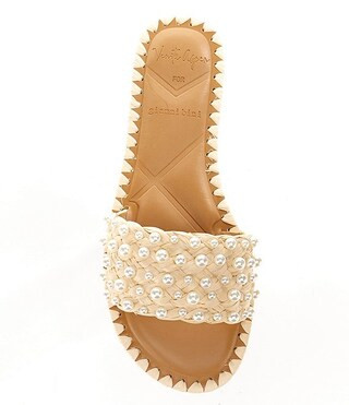 x Venita Aspen Juniper Pearl Beaded Raffia Flat Sandals