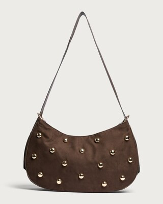 SACHA Faux Suede Studded Shoulder Bag in Brown