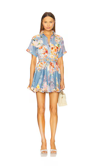 Short Dress With Buckle Belt in Blue Floral